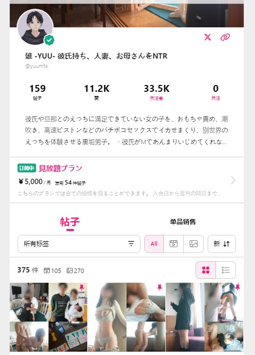 myfans博主雄 -YUU- 彼氏持ち、人妻、お母さんをNTR@yuumtx付费订阅视频合集53部4K原版合集,5000日元订阅,价值人民币234元。