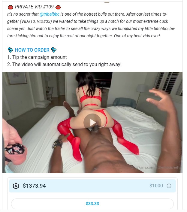onlyfans媚黑淫妻博主@littlemouchette付费VID#109号视频一部,原版高清,视频时长38分钟,购入价格33.33美金,极品绿帽奴伺候老婆被黑鸡巴猛操,操完再刷锅,多个极品绿帽场面!VID视频介绍直达,已经订阅博主的可以去看下